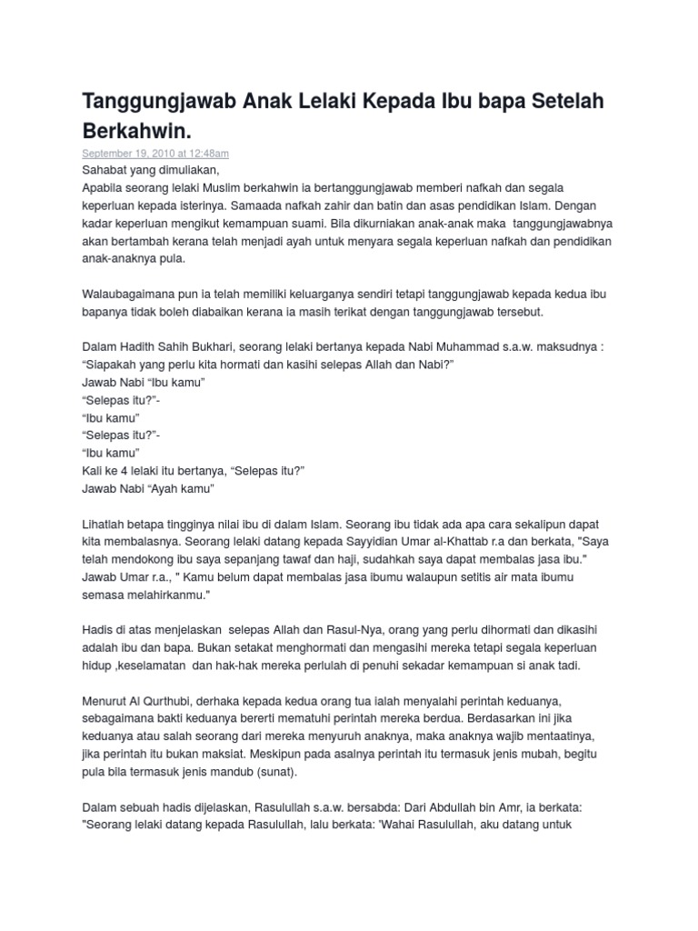 Tanggungjawab Anak Lelaki Kepada Ibu Bapa Setelah Berkahwin Pdf
