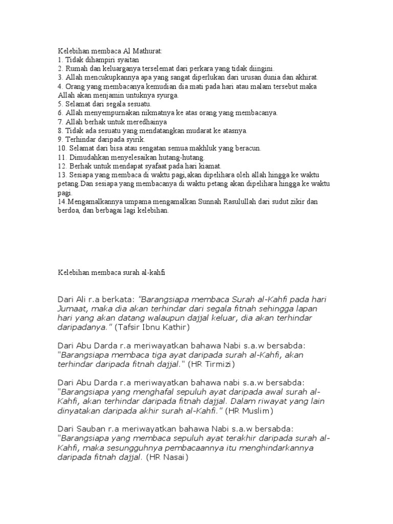 Kelebihan Bacaan Al Mathurat Health Nature Love